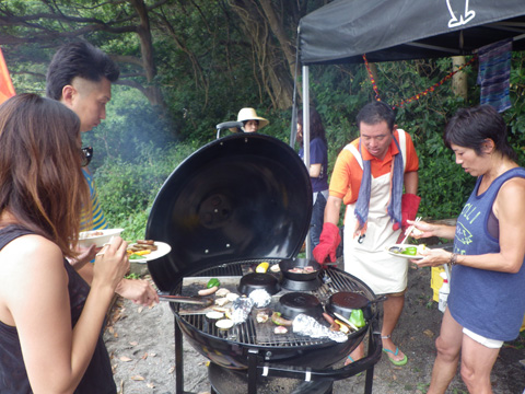 BBQの達人集団Heroが、海の家に大きなBBQコンロを用意。